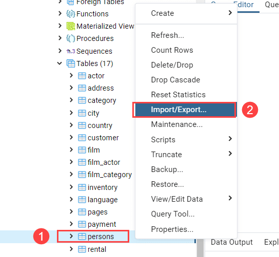 In case you need to import a CSV file from your computer into a table on the PostgreSQL database server, you can use the pgAdmin.